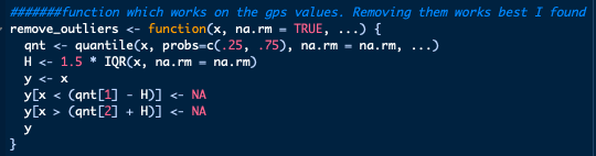 The function that removes outlier data works by finding the quartiles in your data, calculating the inter-quartile range and then using these values to determine and remove outlier data. However rather than use this on the data and alter it, instead we will use this function inside ggplot later on.