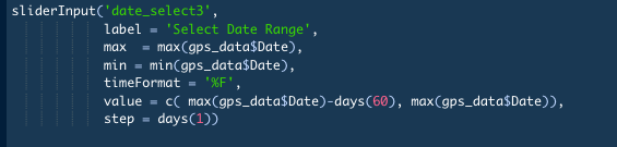 value = c( max(gps_data$Date)-(30), max(gps_data$Date))- Must be numeric vector with 2 values present.