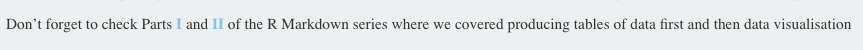 As mentioned above, a version of the report is available to view here, along with the script here. If you haven’t already, don’t forget to check out Part One and Two of the series where we looked at ways produce tables of data with R Markdown and then Data Visualisation. Thanks for reading!