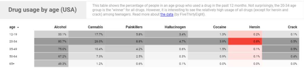 - Each visual allows the user to explore the data themselves through the explorer option in the top right corner.