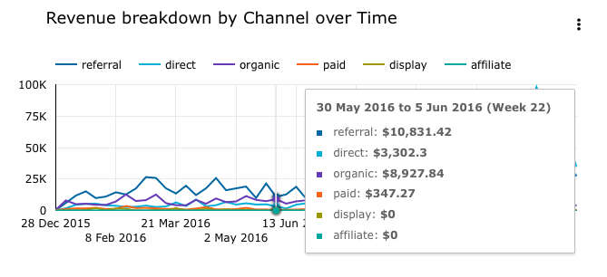 We have two variations of line charts available to use here. First a basic line chart and secondly, a time series line chart. Both charts simply need an a set of values for the y-axis and then either a datetime based or categorical variable for the x-axis